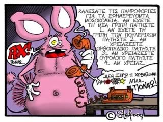 Πονάς; Υποφέρεις; Πρέπει επειγόντως να μάθεις ποιο νοσοκομείο εφημερεύει στην περιοχή σου; Το 166 με ηχογραφημένο μήνυμα σε παραπέμπει στις πληροφορίες του ΟΤΕ, όπου πρέπει να αντιμετωπίσεις και εκεί άλλο ηχογραφημένο μήνυμα, στο οποίο αν δεν ξέρεις για ποιο λόγο υποφέρεις (ε, μα ψαχουλέψου και λίγο!) θα πρέπει να ρίξεις τα ταρό για να αποφασίσεις που πρέπει να πας τελικά...